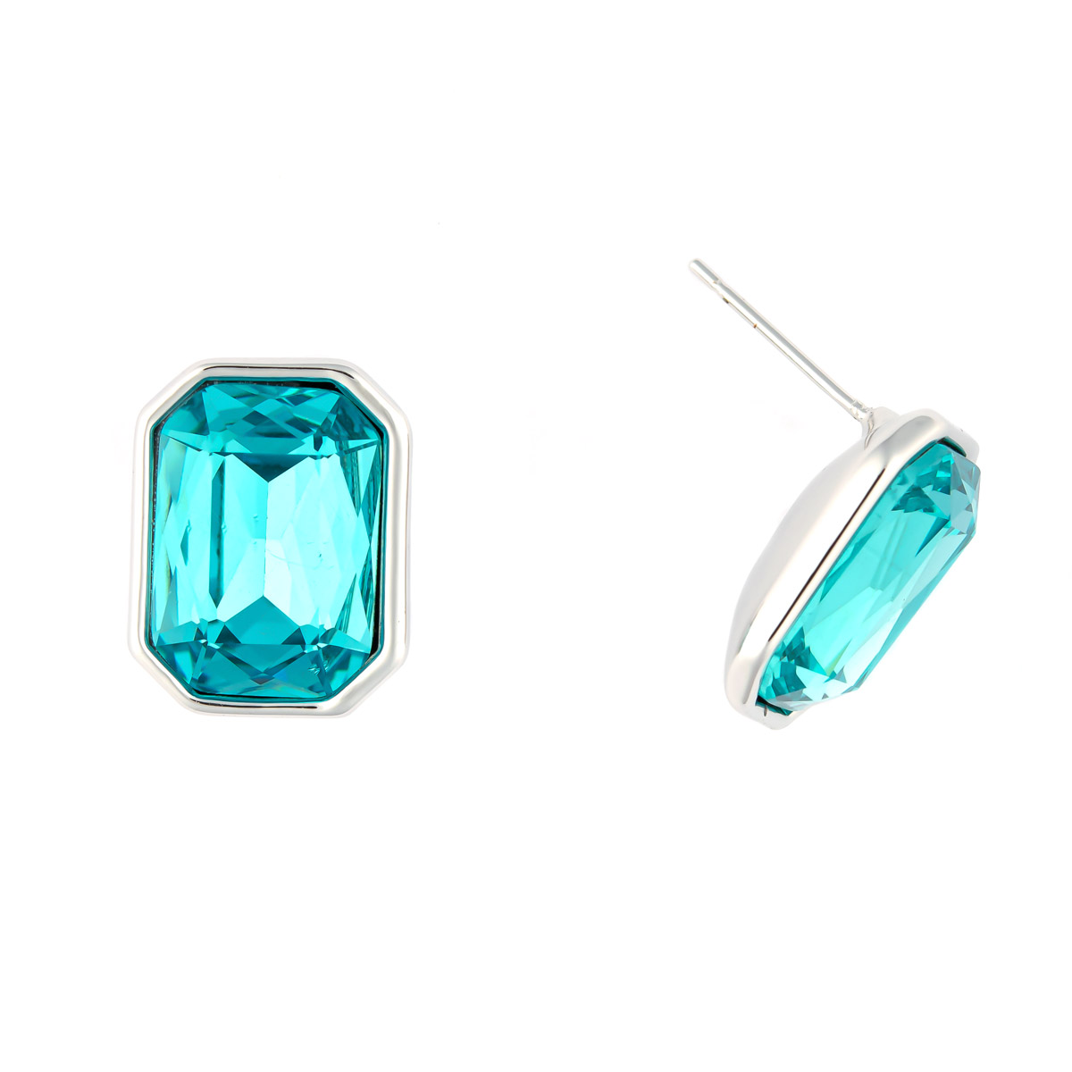 Der im edlen Facettenschliff gestaltete Baguettestein erstrahlt in leuchtendem Aquamarin. Die klare Linie der Ohrstecker ist die ideale Ergänzung für jeden Tag und Anlass. Als kleines Highlight zum täglichen Look oder elegant zur Hochsteckfrisur.