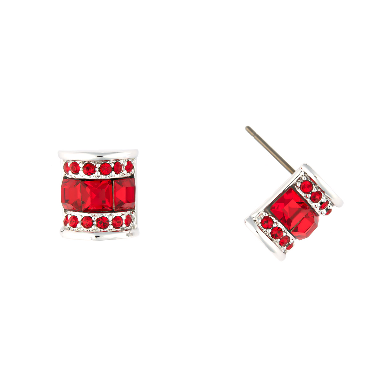 Der elegante Ohrstecker erstrahlt mit roten Baguettesteinen und wird von funkelnden roten Schmucksteinen gekonnt umrandet. Ein echter Blickfang.