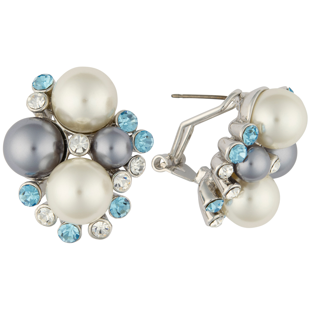 K.V. Fuchs Design Schmuck Damen Ohrstecker in silber mit Perlen in grau, weiß und Zirkonia in blau, weiß »O-1917«