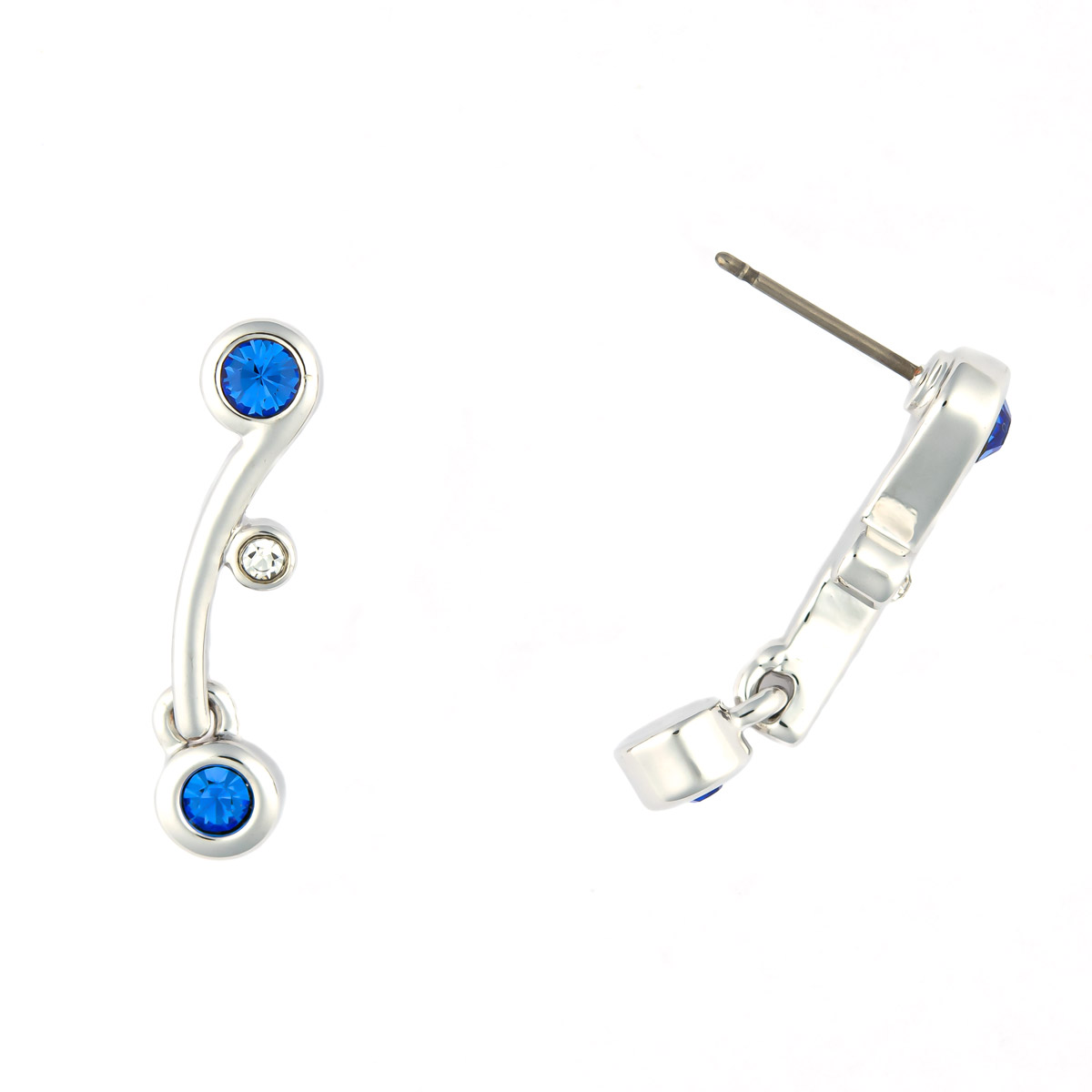 Die formschön geschwungenen Ohrstecker werden von funkelnden Schmucksteinen in blau und weiß gekonnt in Szene gesetzt. Die unteren Steine der glänzenden Ohrstecker sind beweglich. Ein tolles Accessoire für jeden Tag.