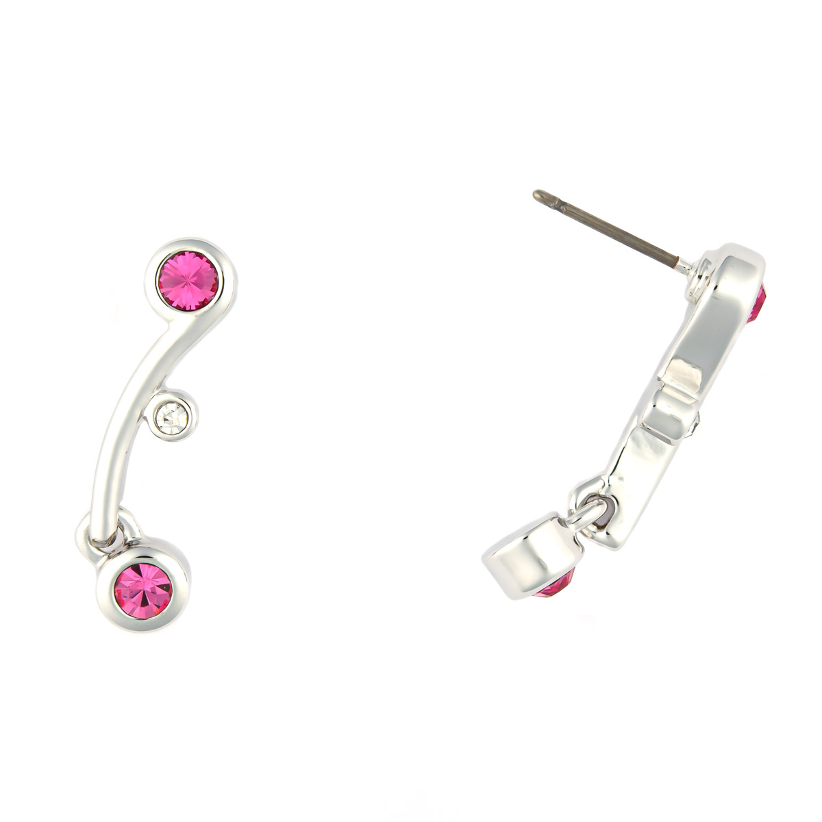 Die formschön geschwungenen Ohrstecker werden von funkelnden Schmucksteinen in pink und weiß gekonnt in Szene gesetzt. Die unteren Steine der glänzenden Ohrstecker sind beweglich. Ein tolles Accessoire für jeden Tag.