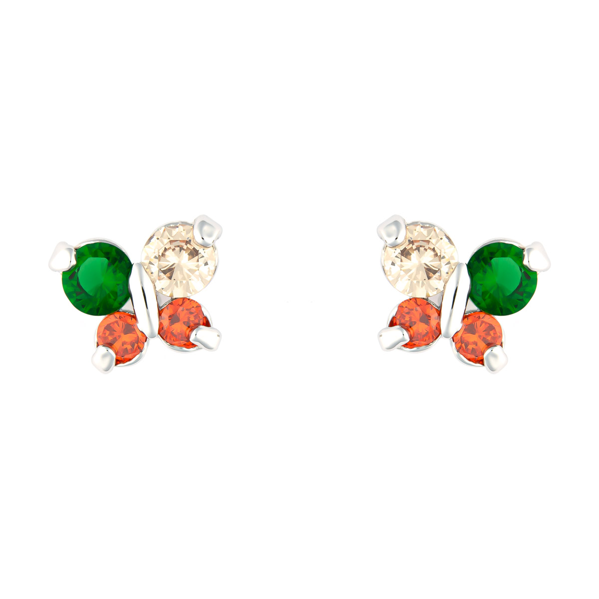 Ein Schmetterling mit liebevoll zusammen gestellten Farben als Frühlingsbote. Durch den Facettenschliff der Schmucksteine funkeln die silberfarbenen Ohrstecker im Licht. Farbenfrohe Sommerbegleiter, die jedes Outfit gekonnt abrunden.