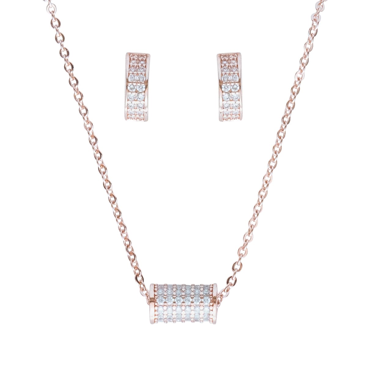 K.V. Fuchs Design Schmuck Damen Set Halskette und Ohrringe in rotgold mit Zirkonia in weiß »Set-3301«