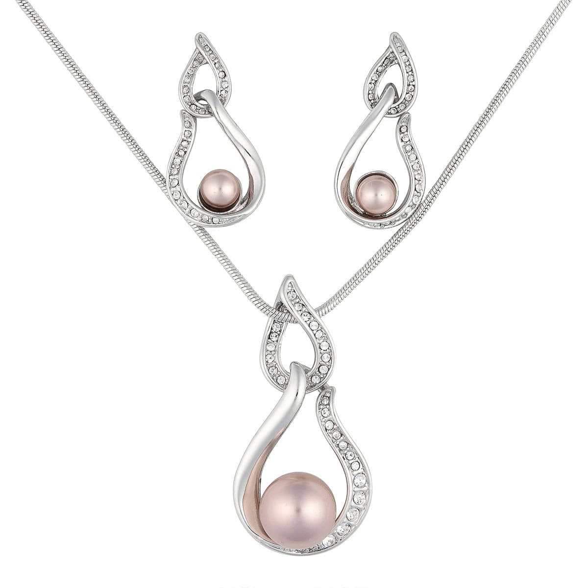 Zeitlos - klassisch das silberfarbene Schmuck-Set mit braunschimmernder Perle. Funkelnde Schmucksteine zieren den formschönen Anhänger und die passenden Ohrstecker. Eine schlichte Schlangenkette komplettiert das elegante Ensemble. Zu jedem Anlass getragen, edel und schick.