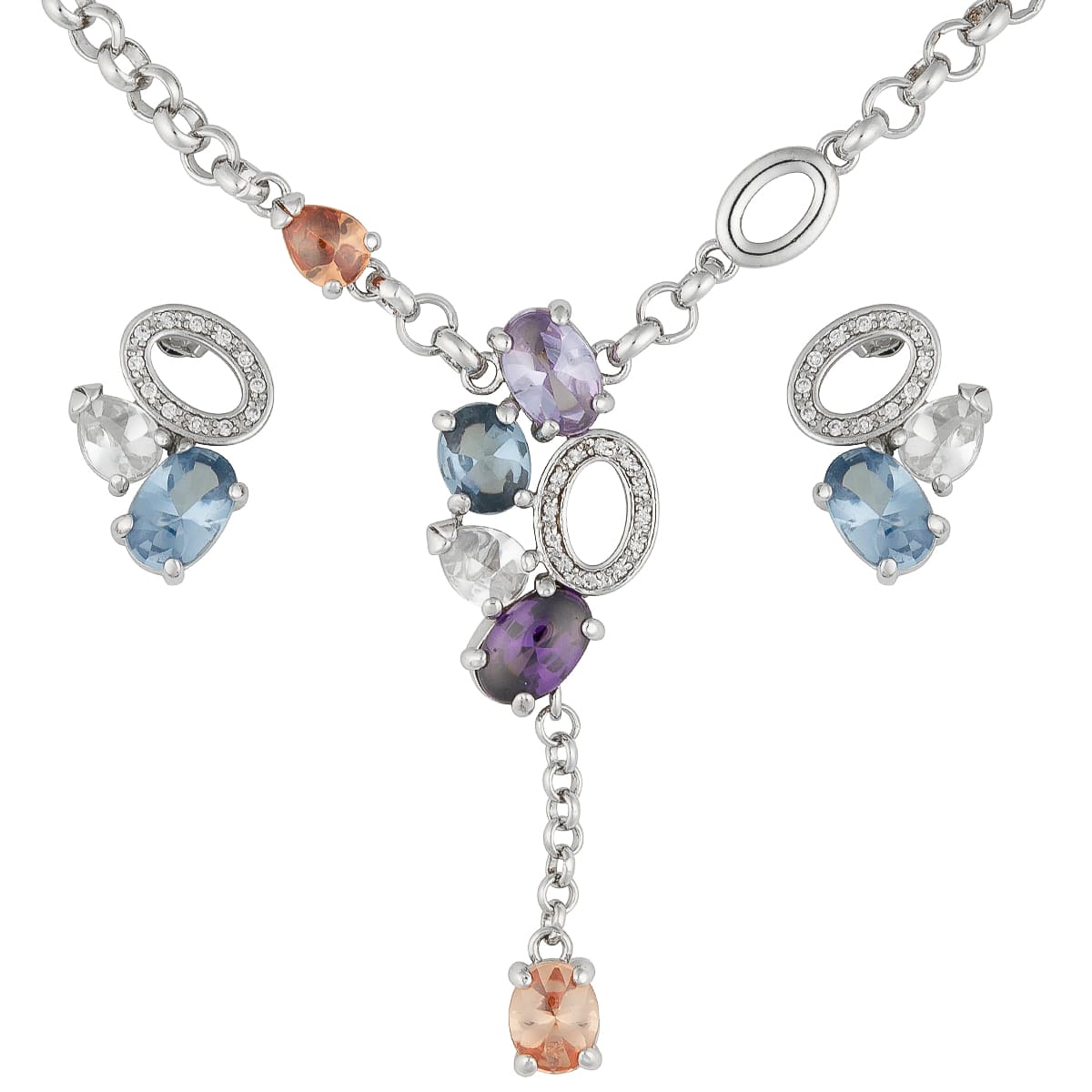 K.V. Fuchs Design, Schmuck-Set, Damen, Metall, silber, Zirkonia, topas, weiß, violett, blau, Karabiner - 14041726