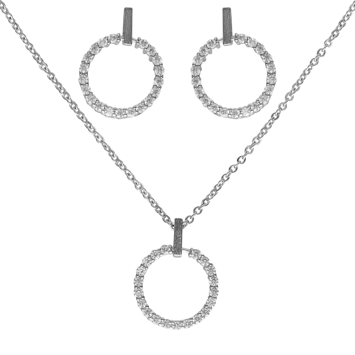Perfekt aufeinander abgestimmt, das silberfarbene Schmuck-Set. Die filigrane Ankerkette begleitet einen mit funkelnden Schmucksteinen besetzten Ring. Zum Set gehören die passend gestalteten glitzernden Ohrstecker. Das klassische Design ist grenzenlos kombinierbar. Egal ob leger oder elegant gekleidet immer ein dezenter Begleiter.