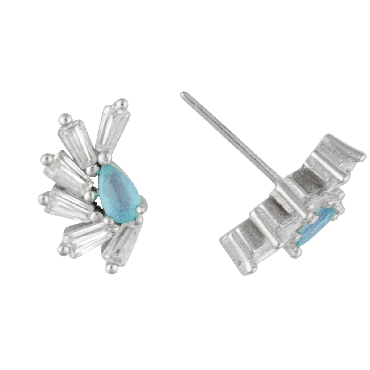 Extravagant funkeln die 925 Silber-Ohrstecker mit Zirkonia am Ohr. Die geschickt geschliffenen Baguett-Steine begleiten den hellblauen Zirkonia in Tropfenform perfekt. Klein, aber fein.