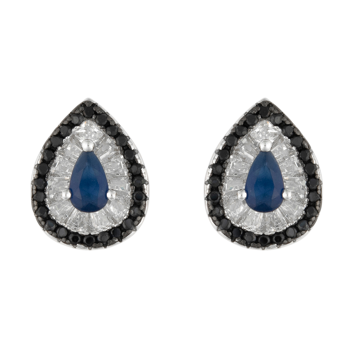 Fällt ins Auge. Die zeitlose Tropfenform mit gleich drei verschiedenen Farben gekonnt umgesetzt. Im Mittelpunkt steht der saphirblaue Zirkonia, umgeben von funkelnden weißen Zirkonia in Baguettform. Wie ein Rahmen wurden noch schwarze Zirkonia im Design angeordnet. Ein farbenfroher Begleiter für jeden Anlass.