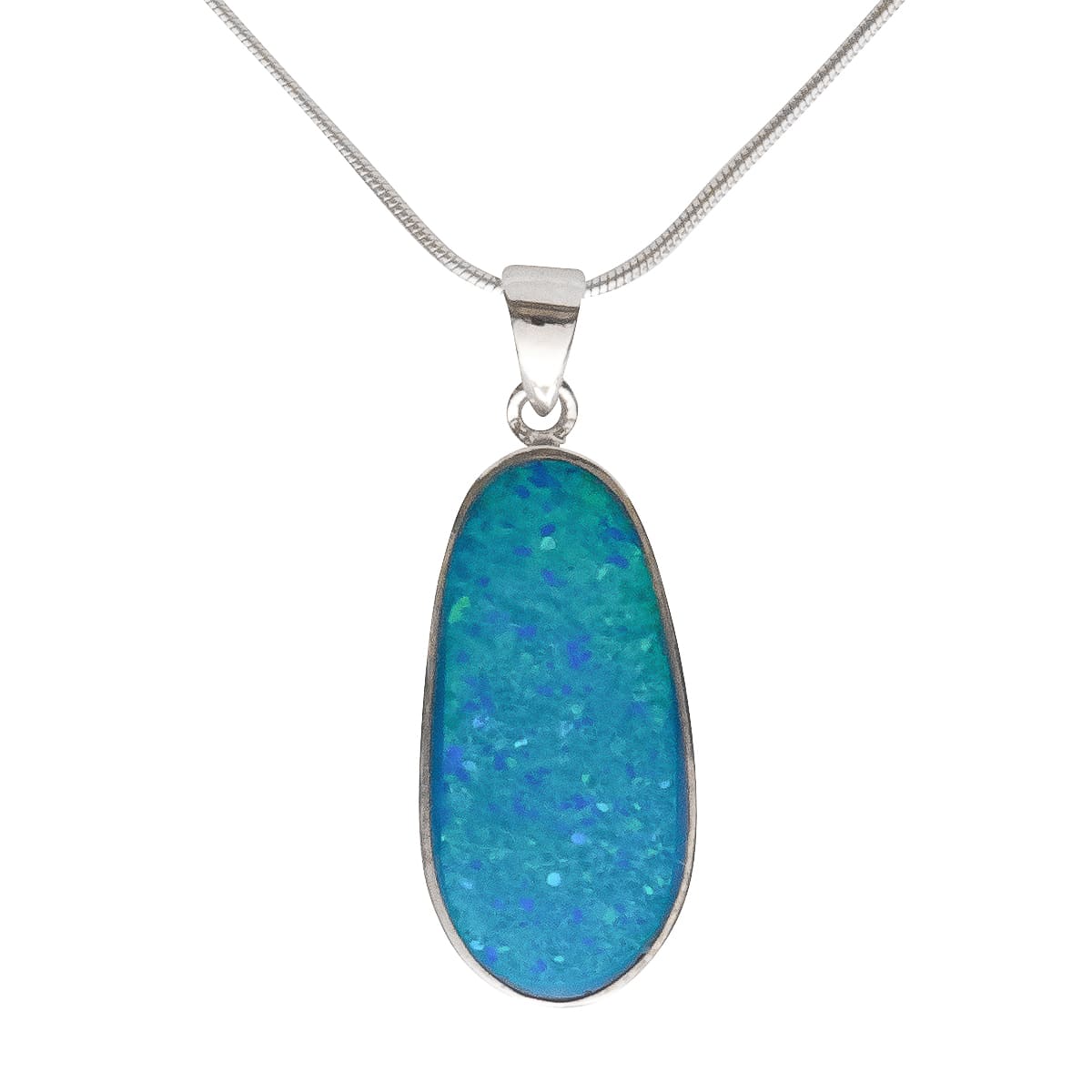 Der klassisch schlichte 925 Silberanhänger ist ein toller Begleiter für jeden Tag. Die Farbreflexe des blauen Recon-Opals werden durch die Silberfassung gekonnt verstärkt. Getragen an einer 45 cm langen 925 Figarokette ein elegantes Schmuckstück.