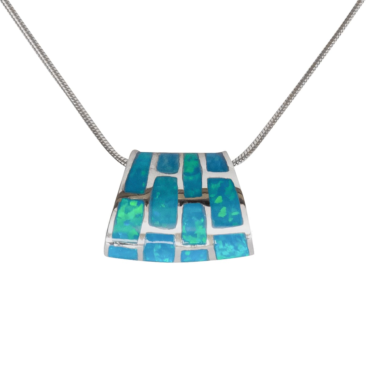Durch die geschwungene Form des 925 Silberanhängers erscheint das schimmernde Farbenspiel des blauen Recon-Opals in ganz besonderem Glanz. Die Einteilung des schimmernden Edelsteins durch die Silberstege verleihen dem Design eine moderne Note. Die Rückseite wurde für ein besseres Tragekomfort mattiert. Der Anhänger wird von einer 45 cm langen 925 Schlangenkette ergänzt. Ein eleganter Begleiter für jeden Tag.