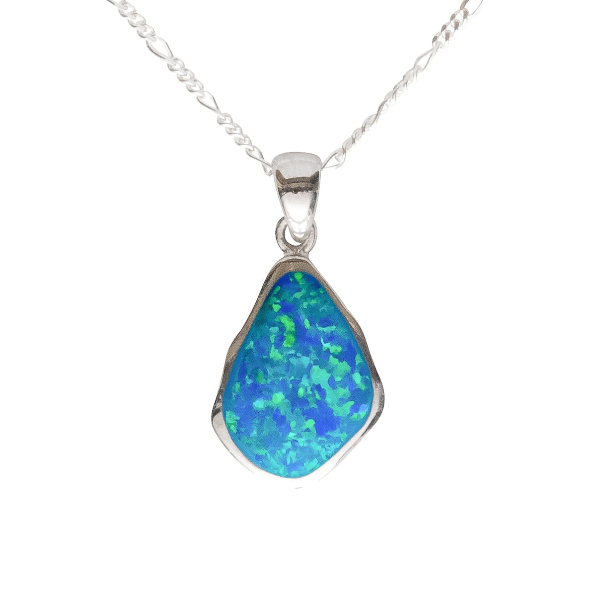 Ein Schmuckstück für jede Gelegenheit ist der elegante 925 Silberanhänger. Die Farbreflexe des blauen Recon-Opal werden durch die Silberfassung gekonnt verstärkt. Der Anhänger wird von einer 45 cm langen 925 Figarokette ergänzt. Perfekt zu kombinieren.