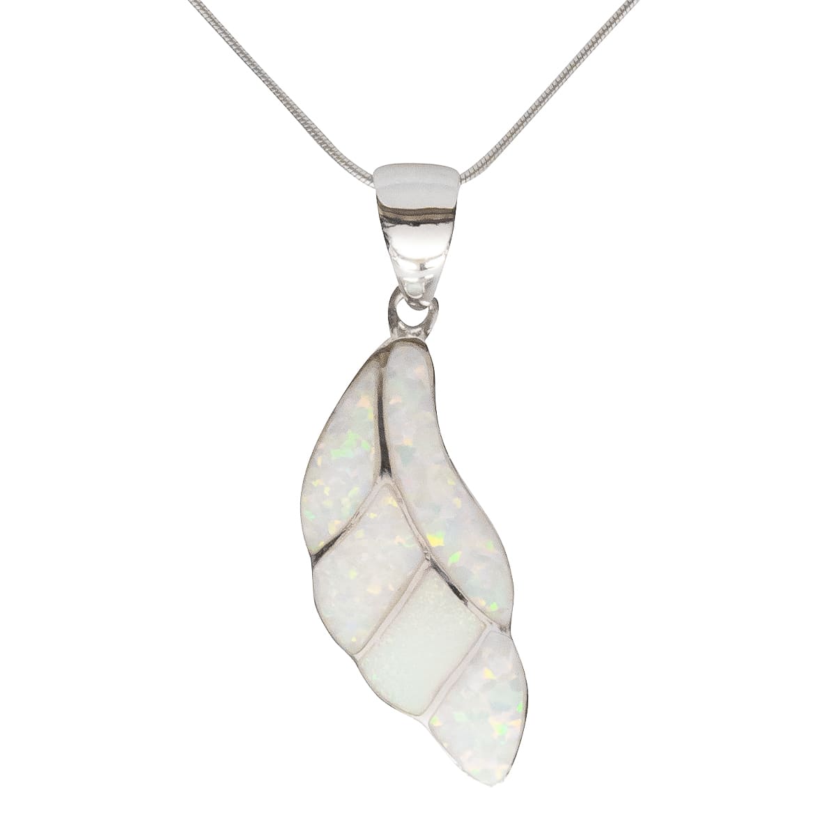 Die Feder steht symbolisch für die Leichtigkeit. Hier als wunderschöner 925 Silberanhänger im weißem Recon-Opal dargestellt. Mit Liebe zum Detail wurden zarte Silberstege zur Formgebung eingearbeitet. Das leichte Schimmern auf der Oberfläche spiegelt die Leichtigkeit der Feder gekonnt wieder. Für den besseren Tragekomfort wurde die Rückseite mattiert. Begleitet wird der Anhänger von einer 45 cm langen 925 Schlangenkette. Ein Schmuckstück für jede Gelegenheit.