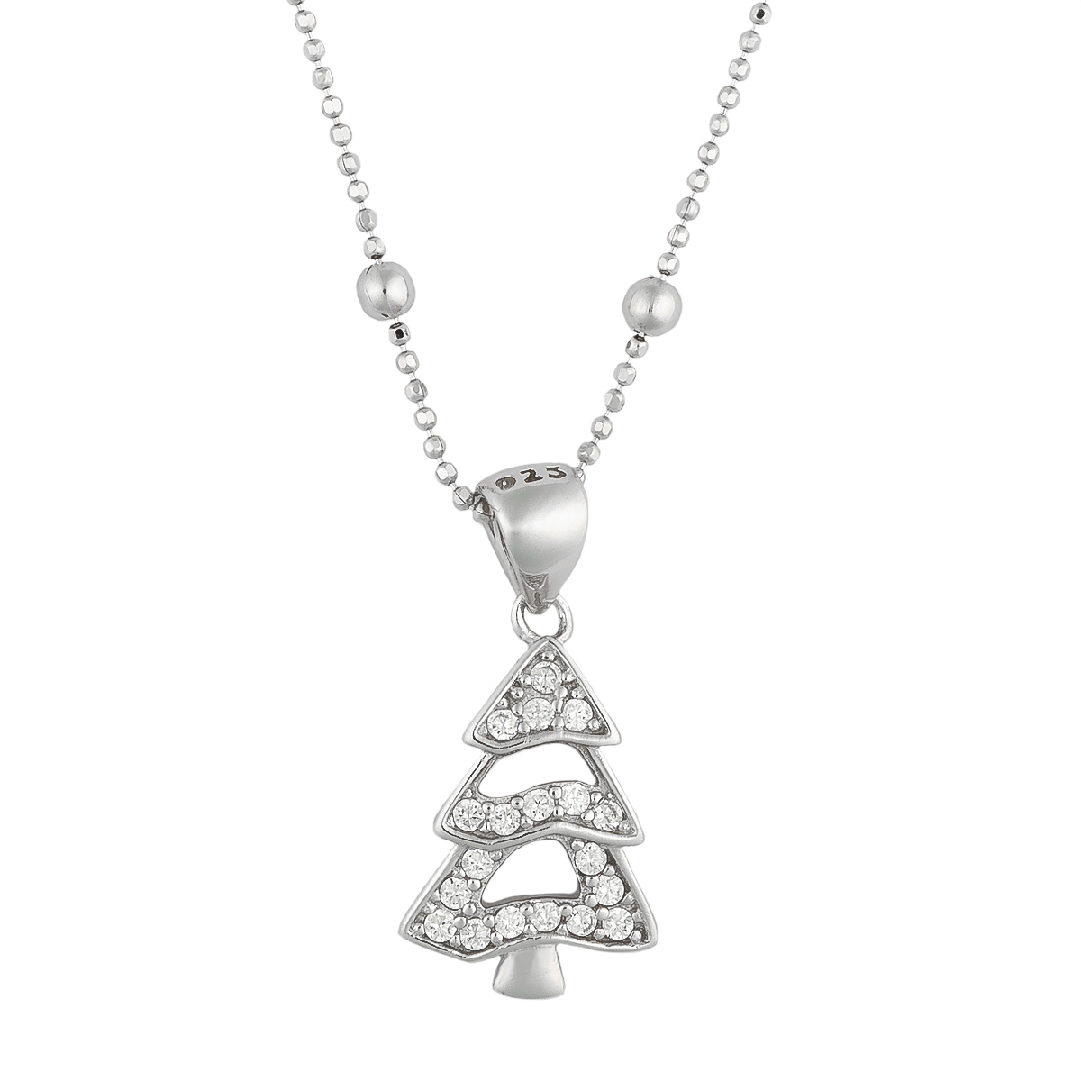 Die Tanne symbolisiert Erdung, Ehrlichkeit, Schutz und Standhaftigkeit. Hier als wunderschöner 925 Silberanhänger mit funkelndem Zirkonia. Getragen an einer attraktiven 925 Kugelkette ein schöner Blickfang.