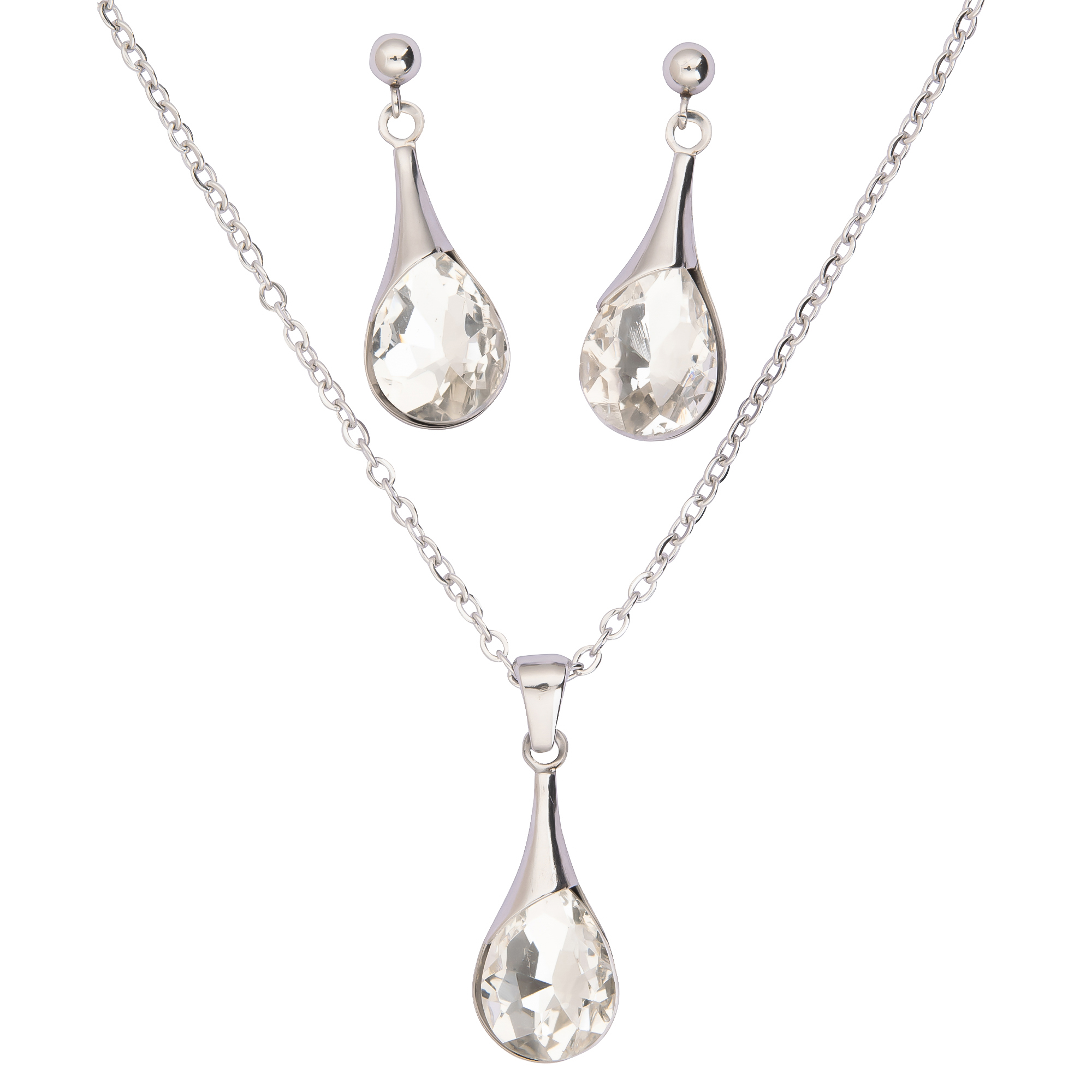 Dieses elegante Schmuck-Set für Damen kombiniert eine silberfarbene Edelstahlkette mit einem tropfenförmigen Anhänger und perfekt abgestimmten Ohrsteckern. Der weiß schimmernde Stein fängt das Licht dezent ein und sorgt für eine hochwertige, zeitlose Ausstrahlung. Dank des robusten Edelstahls ist das Set alltagstauglich und bleibt gleichzeitig edel genug für besondere Anlässe. Ob zum Business-Look, zum Kleid oder als Geschenk: Mit diesem Set wirkt dein Styling sofort harmonisch und komplett.