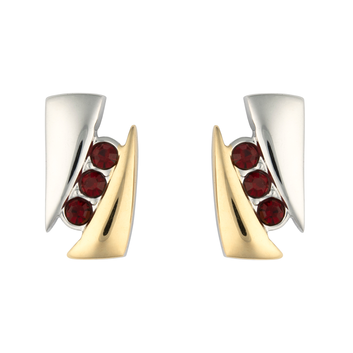 Klassisch elegant erstrahlen die Edelstahl-Ohrstecker in gold- und silberfarben. Funkelnde Schmucksteine in Rubinrot fügen sich perfekt ins Design und geben den Ohrsteckern das gewisse Etwas. Ein schöner Begleiter für viele Anlässe.