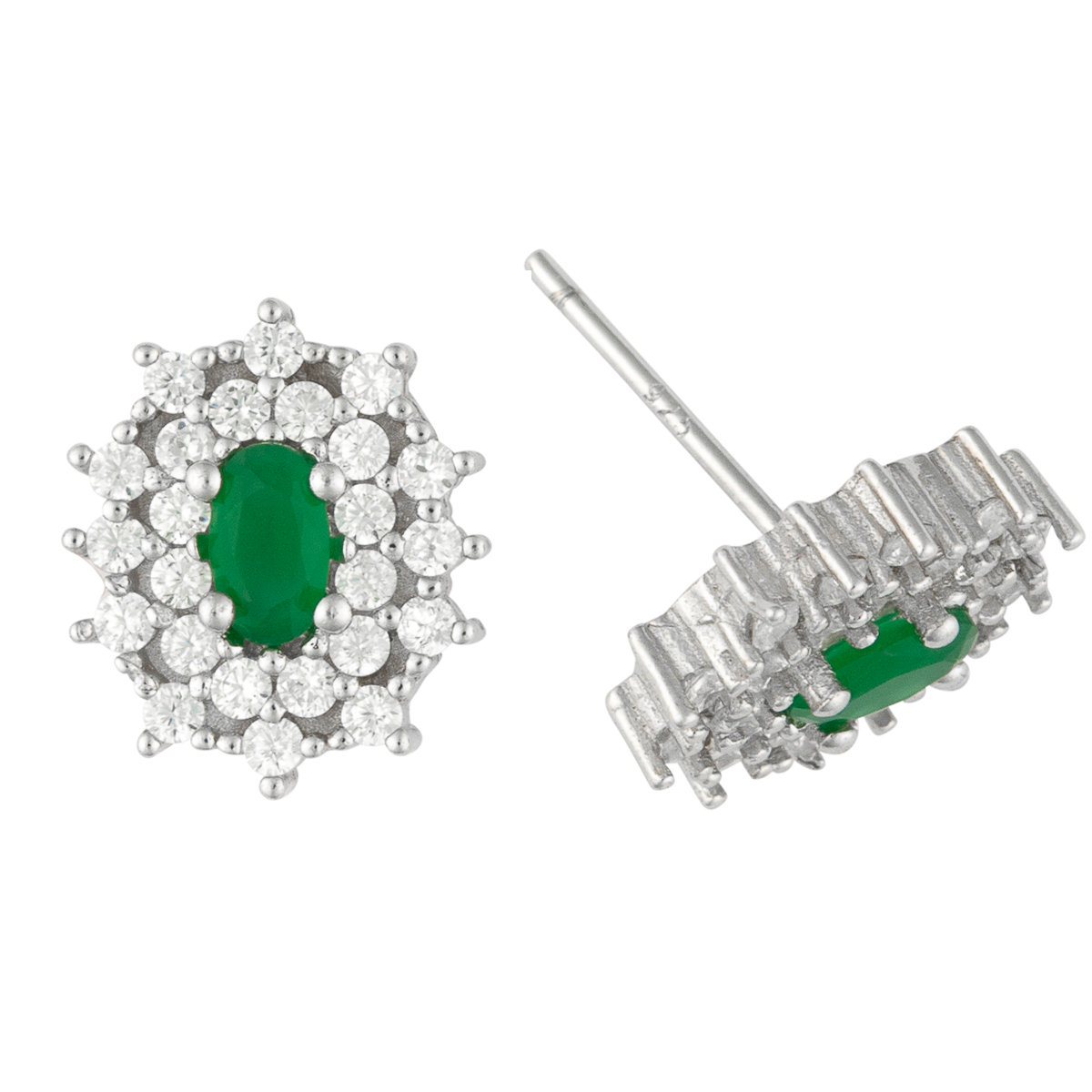 K.V. Fuchs Design Schmuck Damen Silber Ohrstecker 925 Sterlingsilber mit Schmucksteinen in grün, weiß »O-ZI-4906«