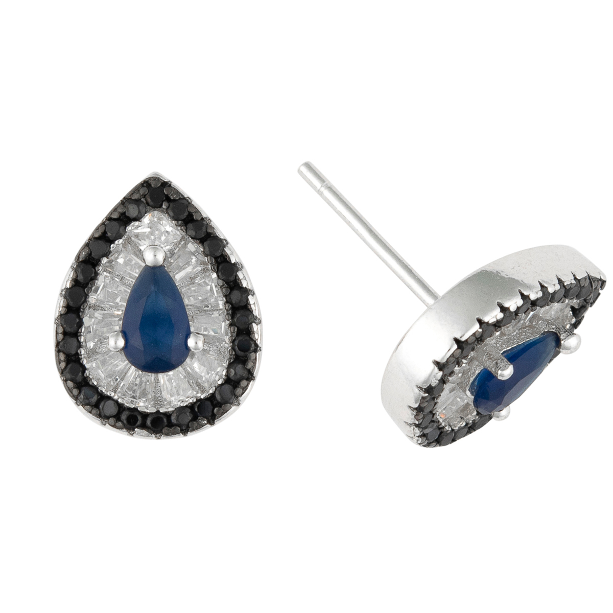 Fällt ins Auge. Die zeitlose Tropfenform mit gleich drei verschiedenen Farben gekonnt umgesetzt. Im Mittelpunkt steht der saphirblaue Zirkonia, umgeben von funkelnden weißen Zirkonia in Baguettform. Wie ein Rahmen wurden noch schwarze Zirkonia im Design angeordnet. Ein farbenfroher Begleiter für jeden Anlass.