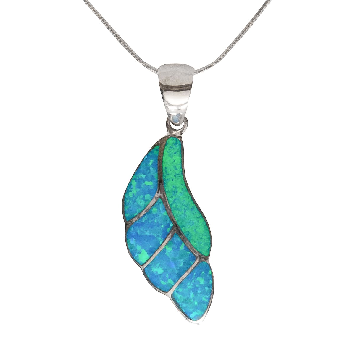 Die Feder steht symbolisch für die Leichtigkeit. Hier als wunderschöner 925 Silberanhänger im blauem Recon-Opal dargestellt. Mit Liebe zum Detail wurden zarte Silberstege zur Formgebung eingearbeitet. Das leichte Schimmern auf der Oberfläche spiegelt die Leichtigkeit der Feder gekonnt wieder. Für den besseren Tragekomfort wurde die Rückseite mattiert. Begleitet wird der Anhänger von einer 45 cm langen 925 Schlangenkette. Ein Schmuckstück für jede Gelegenheit.