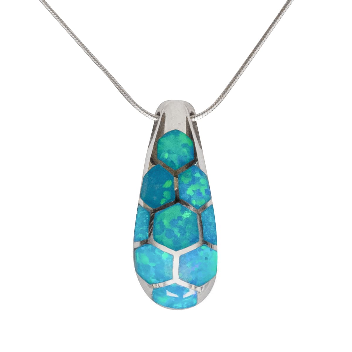 K.V. Fuchs Design Schmuck Damen Silberkette 925 Sterling Silver mit Recon-Opal Anhänger in blau »OP-7903«